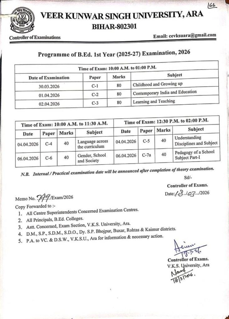 | POST | VKSU B.Ed First Year Exam Routine & Admit Card 2026 |