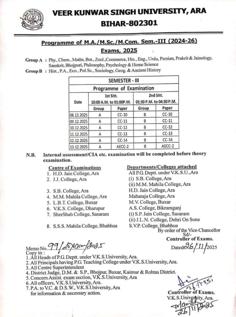 | POST | Vksu Pg Semester 3 Exam Date & Routine Download |
